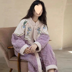 Bathrobe Amazon's same style nightgown, autumn and winter pajamas, thickened and lengthened bathrobe, flannel bathrobe, European and American women