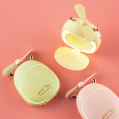 Mini Portable Handheld Beauty Mirror Fan, Cute Bear and Deer USB Charging Fan Mirror with LED Light