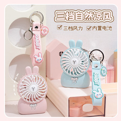 迷你手持小風扇2024款USB充電摺疊掛繩便攜戶外風扇夏季禮品跨境