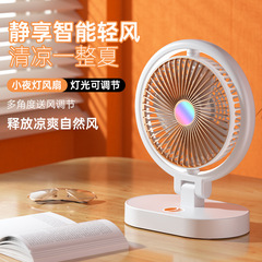 新款USB充電桌面小風扇便攜式家用辦公旋轉+補光燈照明循環電風扇