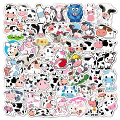 草莓牛貼紙50枚可愛卡通ins塗鴉防水裝飾水杯電腦行李箱奶牛貼紙