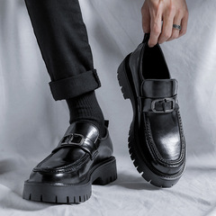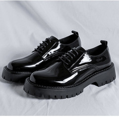 漆皮皮鞋男士夏季透氣牛皮英倫風亮面厚底增高配西裝時尚休閒男鞋