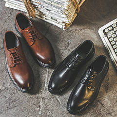 皮鞋男商務牛皮手抓紋青年厚底西裝鞋英倫時尚新郎婚禮鞋一件代發