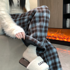 New autumn and winter velvet plaid woolen wide-leg pants high-waisted straight floor-length mopping casual pants for women