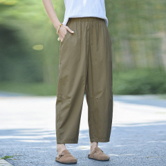 Literary Japanese women's high-density memory cotton nine-point pants with elastic waist, versatile loose casual pants, eight-point balloon pants