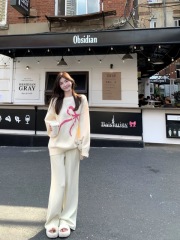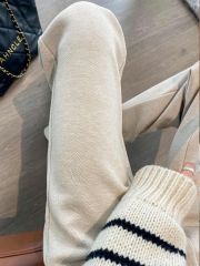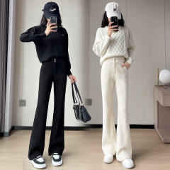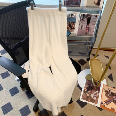 Wool thread white knitted wide-leg pants for women in autumn and winter, versatile high-waisted slimming drapey soft and waxy casual pants ins trend