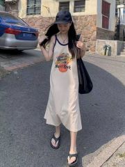 Korean sleeveless suspender vest dress for women in summer backless casual long skirt lazy vacation T-shirt skirt