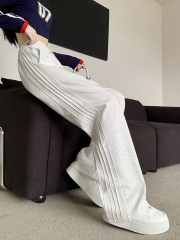Pure cotton American design three-stripe sweatpants women's street style loose straight wide-leg trousers casual sports pants