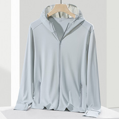 Outdoor new men's sun protection jacket with hood, ice silk sun protective outerwear, cool and breathable, outdoor cycling and fishing clothes