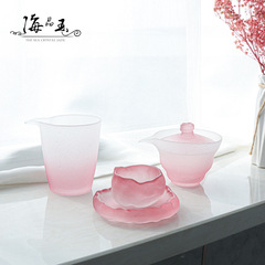 日式粉色女士磨砂玻璃茶具公道杯蓋碗耐熱琉璃杯主人杯茶杯品茗杯