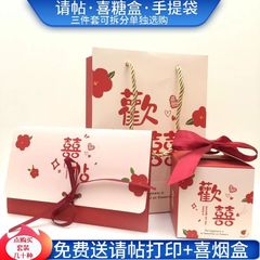 結婚請帖喜糖盒手提袋三件套婚禮請柬禮品袋子喜袋邀請函喜帖代發