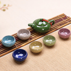 9WOR冰裂茶具套裝家用陶瓷七彩茶杯茶壺簡約功夫茶具商務辦公禮品