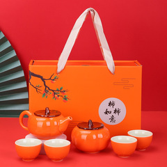 中秋柿柿如意茶具柿子茶葉罐套裝婚禮喜慶商務開業活動禮品logo
