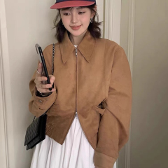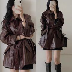 $ 19.70 Sold 102025春裝薄款慵懶風咖色皮衣外套女新款寬鬆皮夾克襯衫韓國外貿