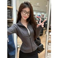 Korean style hot girl lapel zipper long-sleeved jacket women's slim-fitting inner layered shirt and tight top