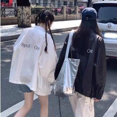 Korean Leisure Style Letter Print Windbreaker Jacket for Women Spring Casual Loose Thin Type Jacket Sun Protection Open Top Trendy