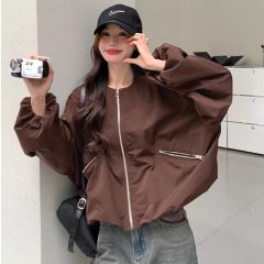 Stylish Casual Cropped Stand-Neck Coat for Women—2025 Spring/Summer New Arrival, Solid Color, Versatile, Oversized Casual Jacket
