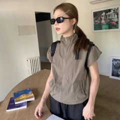 2025 summer design niche sun protection short-sleeved jacket for women with small turtleneck zipper sports casual style jacket top