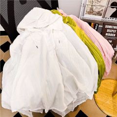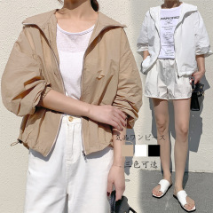 New summer tops, versatile, lightweight, comfortable, contrasting colors, hooded, loose short coat, sun protection clothing, women's thin, trendy