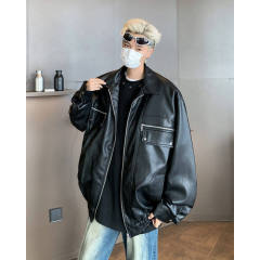 $ 40.20 Sold 1Trendy brand PU leather baseball jacket men's loose couple bomber jacket men's street embroidery