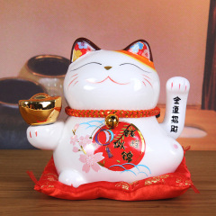 Lemiao New Fuyuan Cat 8-inch Lucky Ceramic Lucky Cat Piggy Bank Sakura Cat Home Ornament Gift