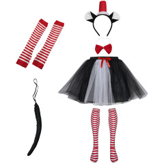 Anime-style Halloween Cat Ears Costume Headband, Red Stove Hat, Skirt Cosplay Costume