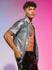 Men's Formal Shirt 2024, Shiny Button-down Shirt, Fashion Collar Shiny T-shirt Shirt