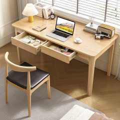 北歐實木書桌家用小戶型書房原木家具臥室橡木電腦桌寫字檯學習桌
