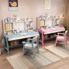 G3YN雙人書桌書架一體桌實木電腦桌台式家用臥室學生學習寫字桌辦