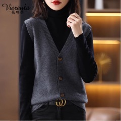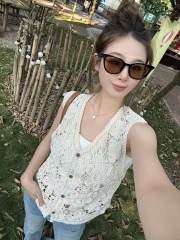 Knitted sweater vest cardigan top early spring autumn 2024 new women's vest vest outer vest