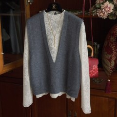 WESTAYONE 24/SS New Academic Style Navy Knit V-Neck Cardigan Spring Loose Vest Top