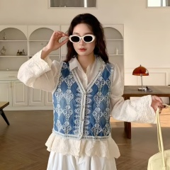 Vest layered with loose love button pocket denim vest short jacket