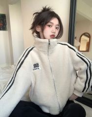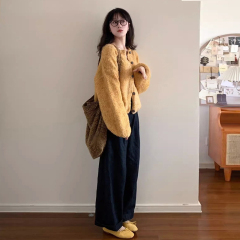 Actual shot Korean style loose small fragrant style lamb wool short woolen jacket top
