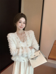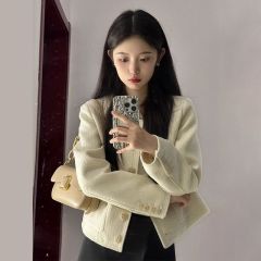 Wool small fragrance jacket for women in autumn and winter high-end apricot short wool cardigan