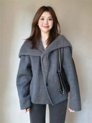 2024 Winter Cashmere Coat Women's New Knitted Collar Large Lapel Wool Woolen Coat Short Jacket