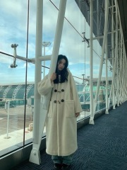Autumn and winter thickened padded shoulder-padded high-end long white woolen coat