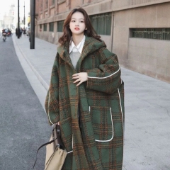 Long horn button lambswool coat for women autumn and winter lambswool college style warm hooded coat