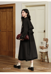 Actual shot of classic black suit woolen coat for women winter mid-length Korean style woolen coat