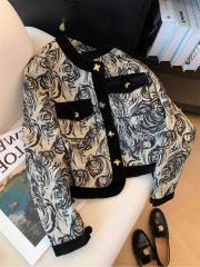 小香風時尚氣質獨特别致短款外套女春秋季新中式水墨撞色開衫上衣
