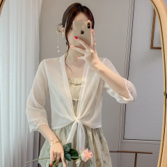 Summer dress Korean version of women's summer dress, short thin shoulder sunscreen shirt, lace 100-fold cardigan, small shawl