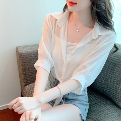 Real price Korean summer and autumn chic retro shirt bat sleeve sunscreen shirt