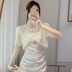 Summer Sunscreen Women's Wear Chiffon Shawl, Summer Baitao Short-style Shoulder Short-sleeved Thin-cardigan Short-jacket