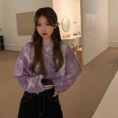 新款寬鬆韓系扎染微透網紗長袖恤洋氣防曬打底衫薄款上衣女水墨畫
