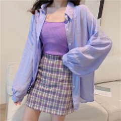New Sunscreen Women's Korean Version Baitao Loose Medium-long Fat MM Checker Overcoat Thin Open Shirt