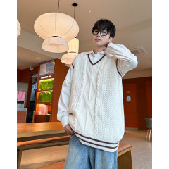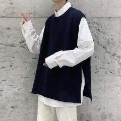 $ 21.80 Sold 3Knitted V-neck sweater vest side hem slit vest men's layered jacket Japanese style lazy waistcoat
