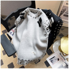 Hong Kong style casual solid color hole knitted deer plush hand knitted raw edge vest vest