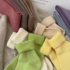 Pure Color Coral Fleece Socks for Girls, Autumn and Winter Mid-Calf Socks, Thick and Warm, Home Towel Floor Socks for Sleeping in Winter