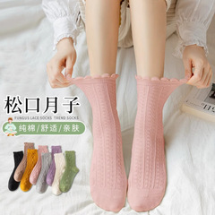 諸暨中筒襪子女純棉夏季透氣花邊堆堆襪jk白色長襪洛麗塔蕾絲花邊