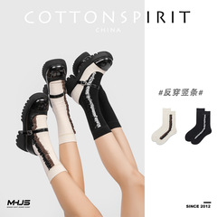 Striped socks for women, mid-calf socks for autumn and winter, 100% cotton, retro student socks, trendy Japanese style, puffy socks, versatile, anti-odor