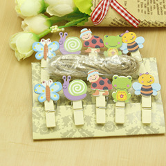 Photo album, picture folder, small wooden holder, wooden small clip, cartoon insect clip with string